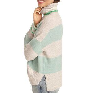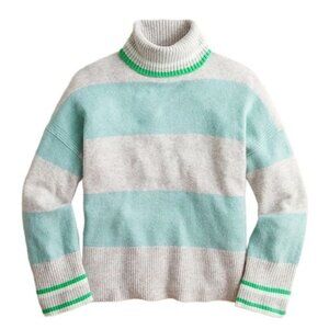 J. Crew Striped Turtleneck Sweater in Supersoft Yarn Heather Silver Mint NWT