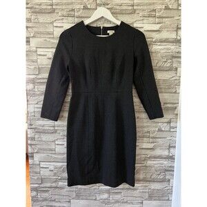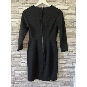 J Crew Structured Knit Sheath Dress Exposed Zipper Womens 0 Black Long Sleeve