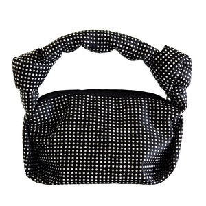 J Crew Studded Double Knot Handbag Black Satin Slouchy Purse Party Cocktail Boho
