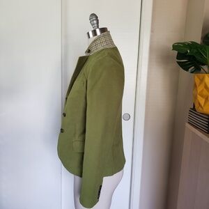 Design/Details: J. Crew classic silhouette suede blazer with plaid detail under-collar. Design also features front flap pockets, button entry and cuffs.