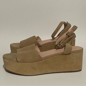 J. Crew Suede Flatform Ankle Strap Sandals in Old Lace