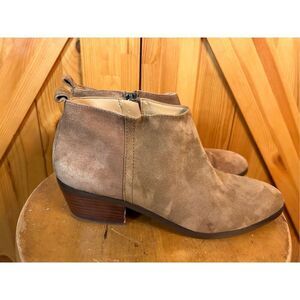 J. Crew Suede Sawyer Bootie Brown Size 8.5 side zippers 2” heel