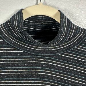 J. Crew Supercozy Turtleneck Top Metallic Stripe Women's Small Black Shirt