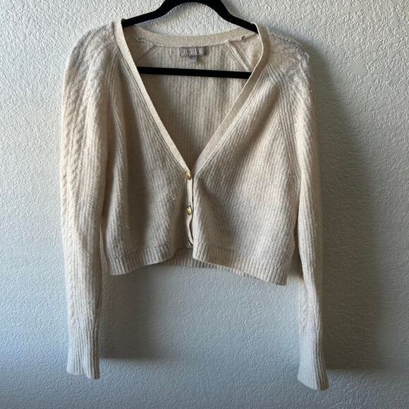 J Crew Supersoft Cropped Cable-knit Sweater Cardigan M Alpaca Blend Quiet Luxury