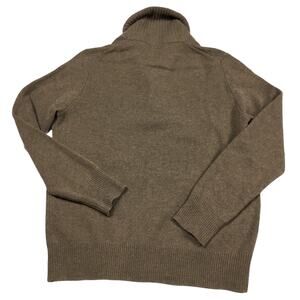 J. Crew Sweater 100% Lambswool Shawl Collar Mens Medium Brown Ribbed Trim Button