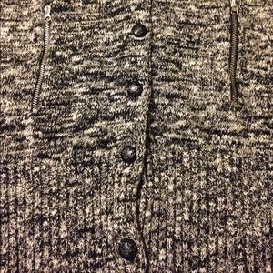 Cool long sweater, fitted by the hip area with round buttons, and zipped side pockets!