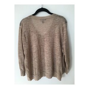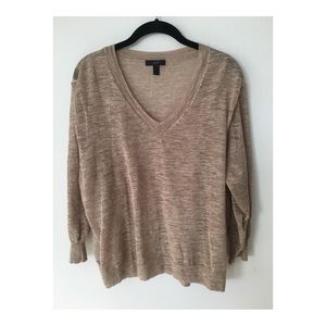 Hi, does this have a metallic shimmer? And....is it big, sloppy and loose fitting with a deep V neck? What condition is it in?