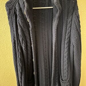 J Crew cardigan style M’S Medium. Wooden buttons go all the way up.