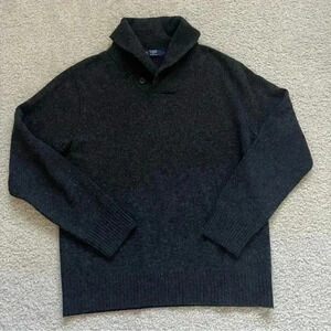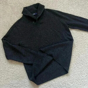 J Crew Sweater Button Dark Gray High Neck Men’s Size Large 100% Lambs Wool 19458