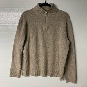 J. Crew Sweater Confetti Men Large Tan Quarter Zip Merino Wool Blend Ribbed Trim