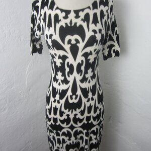 J Crew Sweater Dress Women's Size XS Black Geometric Pattern Short Sleeve