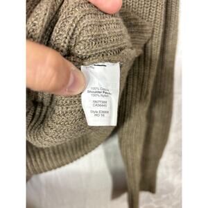 J Crew Sweater Lrg Tan Cotton Ribbed Faux Suede Shoulder Patch Woodsman Comando