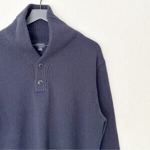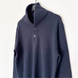 J. Crew Sweater Mens 100% Lambs Wool Button Cowl Neck Navy Cozy Casual Large