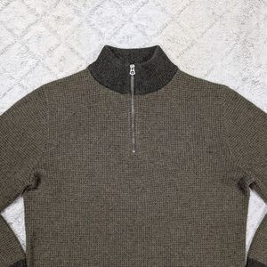 J. Crew Sweater Mens M Green Knit Rugged Merino Wool ½ Zip Pullover