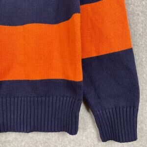 J. Crew Sweater Mens M Navy Blue Orange Striped Cotton Crewneck Pullover