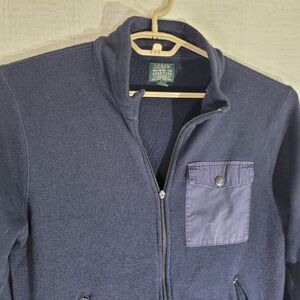 J Crew Sweater Mens Medium Blue Pullover Sweatshirt Pockets Casual Fleece READ