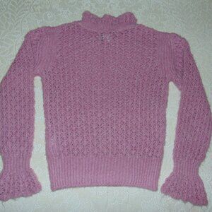 J Crew Sweater Pastel Pink Open Cable Knit Accents Pullover Mock Neck Long Sleeve Soft Fuzzy sz 4