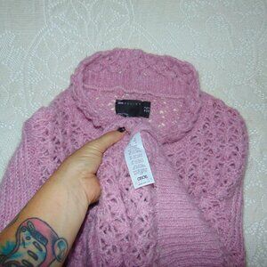 J Crew Sweater Pink Womens Cable Knit Pullover Mock Neck Long Sleeve Fuzzy sz 4