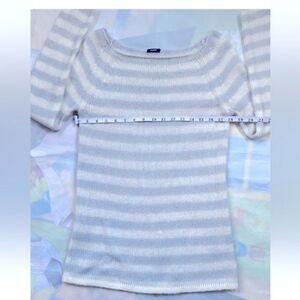 J Crew Sweater Small Light Gray White Striped Mohair Wool Blend Nautical Lightweight. Condition is "Pre-owned"