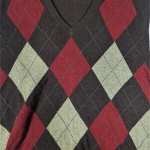 J. Crew Sweater Vest Mens Large Argyle Brown Multicolor Cotton Cashmere