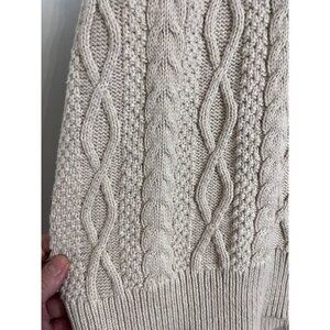 J Crew Sweater Women M Tan Cable Knit Fisherman Chunky Old Money Oarsman Preppy