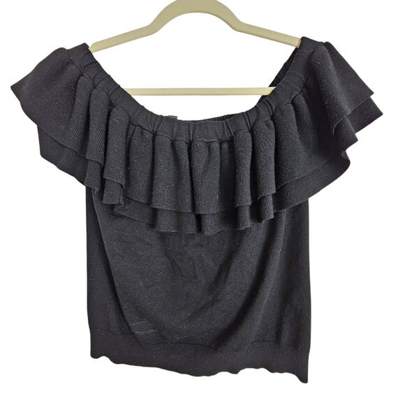 J Crew Sweater Women XL Black Knit Sweater Off Shoulder Sweater Ruffle Sweater
