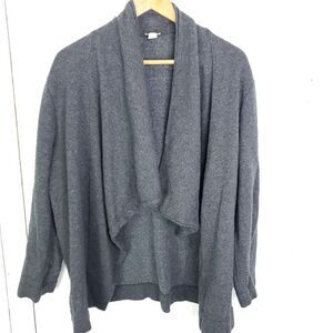 J Crew Sweater Womens L Cardigan Oversized Draped Collar Dark Gray Mid Weight