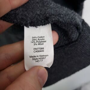 This women's J.Crew cardigan sweater in a solid gray color features an open neckline and long sleeves, making it suitable for travel, casual outings, or workwear. The sweater is made of a knit fabric blend of polyester, cotton, wool, and acrylic, providing warmth and comfort during the winter, fall, or spring seasons. The machine washable garment comes in a size large with a regular fit, perfect for adding a classic touch to any outfit.