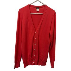 J Crew Sweater Womens Large Red Button Front Cardigan Classic Lightweight Layering
