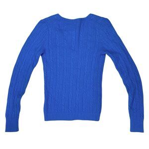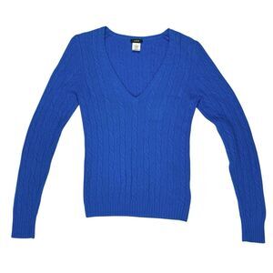 - Description: J. Crew Sweater Womens M Blue Cable Knit V Neck Wool Cashmere Preppy Winter Wear