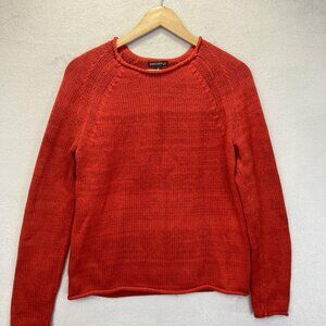 J Crew Mercantile Sweater Womens Medium Red Orange Knit Heavy Pullover Rolled Hem