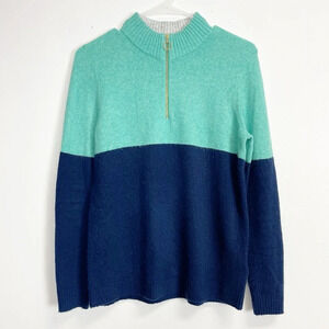J Crew Sweater Womens Size XS Navy Blue Green Colorblock Zip-up Pullover