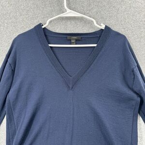 J Crew Sweater Womens Small Merino Wool Blue V-Neck Knit Solid 3/4 Bell Sleeve