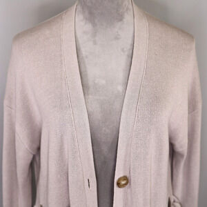 J Crew Sweater Womens XS Beige Long Cardigan Tunic Cotton Blend Pockets Grandpa
