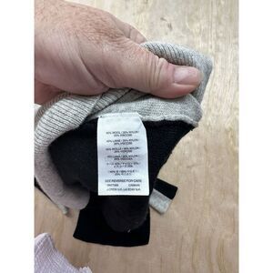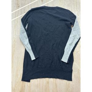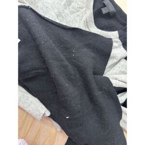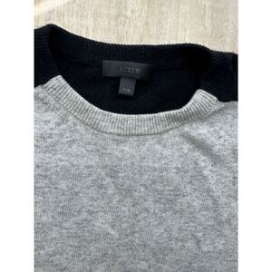 This is a J.CREW women's sweater in size XXS, featuring a crew neck and a pullover style. The sweater is made from a wool blend material and has a color block design in gray and black, adding a colorful touch to the classic combination of hues. Perfect for a casual and cozy look, this sweater is a stylish addition to any wardrobe. Piling under arms and on inside of sweater