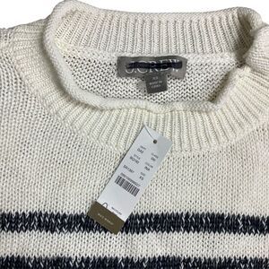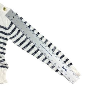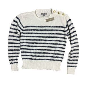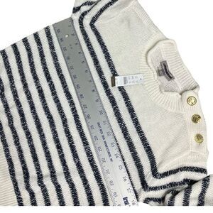 J Crew Sweater WMNS XS White Linen Blend Relaxed Beach Striped Gold Buttons Classic Nautical Preppy Outdoors