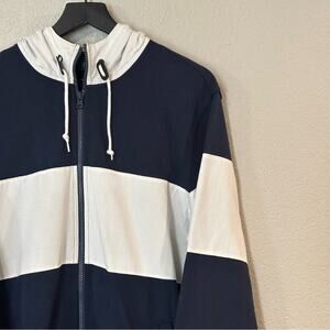 J. Crew Sweatshirt Mens Full-zip Rugby Hoodie Preppy Ivy Style Navy Blue Size M