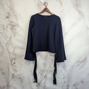 J Crew Sweatshirt Size XS Blue Bow Tie Sleeve Wide Crew Neck Cotton Women G8374