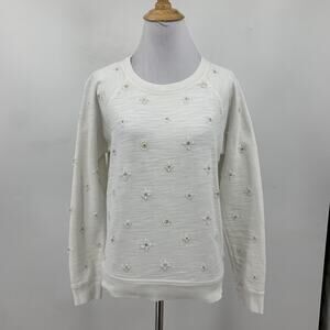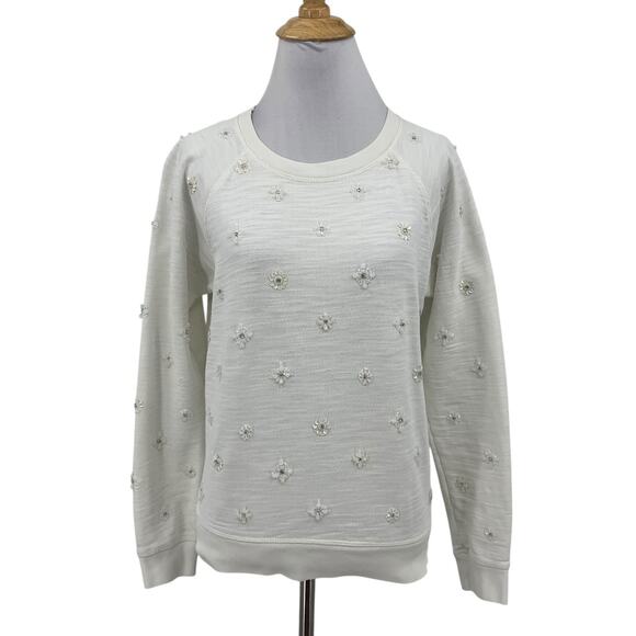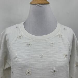 J Crew Sweatshirt Womens S Small Beaded Sequins Applique Crew Stretch Pullover