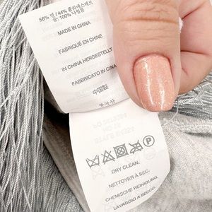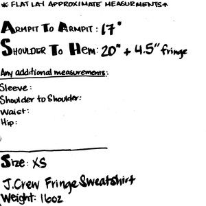 Classic crewneck sweatshirt from J. Crew with a fringe hem. Bracelet sleeves. Back zip closure. Pale gray with a contrasting darker gray fringe. In gently preowned condition. Minimal wear present consistent with normal use and/or cleaning. See photos for more details.