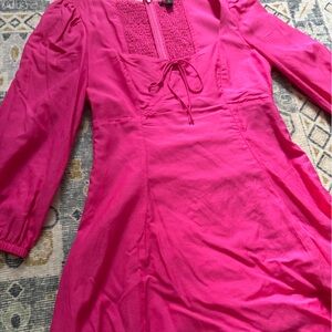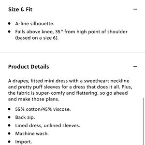 A drapey, fitted mini dress with a sweetheart neckline and pretty puff sleeves for a dress that does it all. Plus, the fabric is super-comfy and flattering, so go ahead and make those plans.