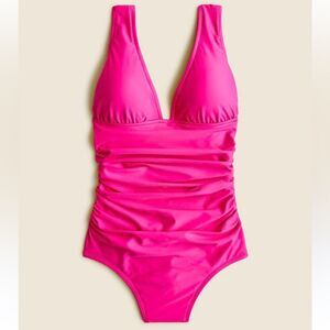 J Crew Women's Ruched V-neck one-piece in Radiant Fuchsia Size 22. Everything is more flattering with a bit of ruching.