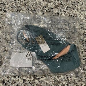J Crew Women's Ribbed curved-waist cheeky string bikini bottom in Teal Size Medium.