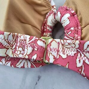 J Crew Swim Top 2X Pink Floral Bandeau Bikini Tie Back String Ring Halter BH555