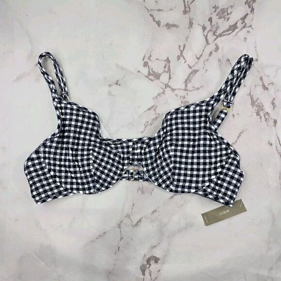 J Crew Swim Top 42D Blue Gingham Underwire Bikini Ruffle Seersucker BE750