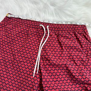 J Crew Swim Trunk 6" inseam Red Navy Print XL Beach Pool Preppy Vacation #AH834