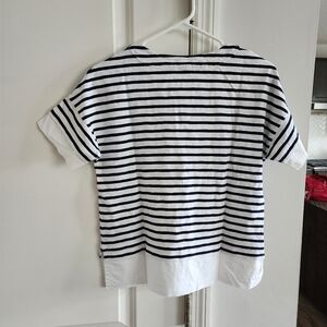 J. Crew Swingy Striped Poplin Lace Up Sailor T-Shirt. Women's size XS. Preowned in good condition. Swingy, striped and ready for pretty much anything, this is a new take on the classic nautical T-shirt. It's hard to reinvent the wheel, but we think a lace-up front and airy side slits do the trick nicely. Cotton.