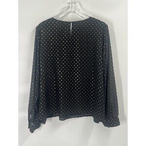 J Crew Swiss Dot Polka Metallic Black Gold Blouse Sz 3X