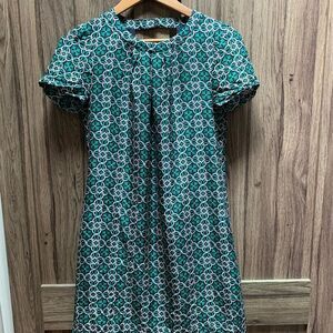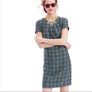 J. Crew Swoop Latticework Medallion Silk Dress Green