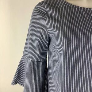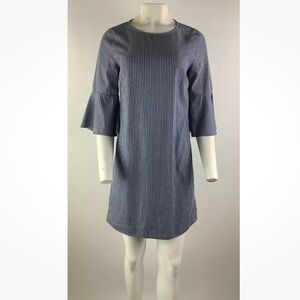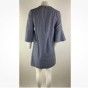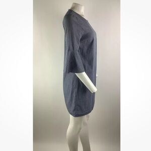 J Crew Sz 4 Striped Cotton Shift Dress Blue White 100% Cotton Flare Sleeves
